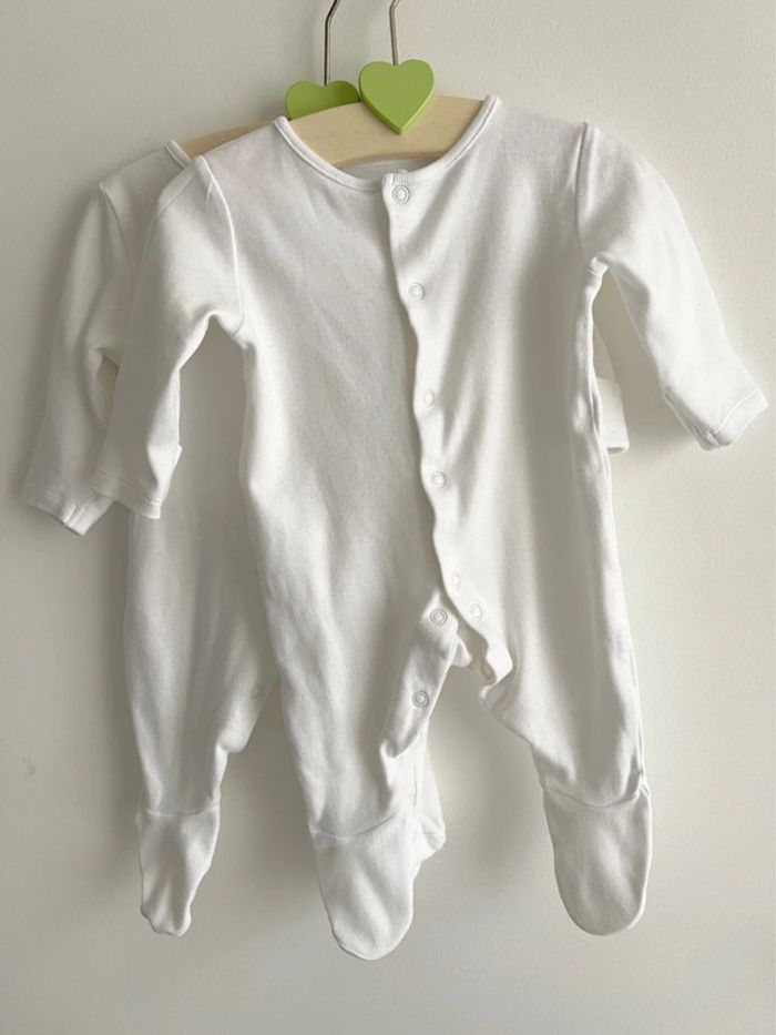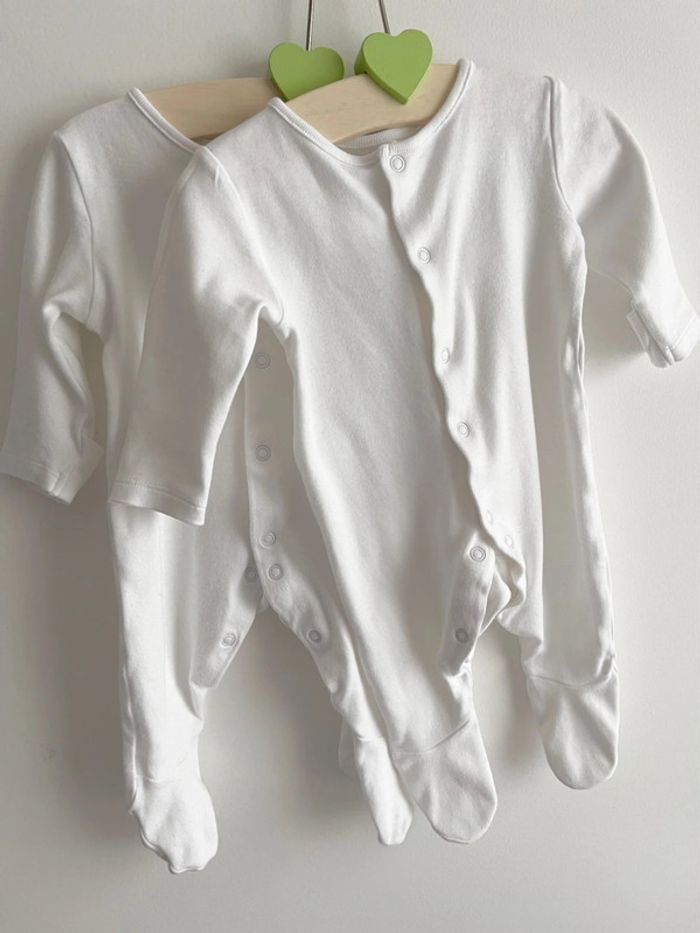 Lot de 2 pyjamas / dors-bien manches longues blancs en 100% coton taille 0-3 mois Marks & Spencer - photo numéro 1