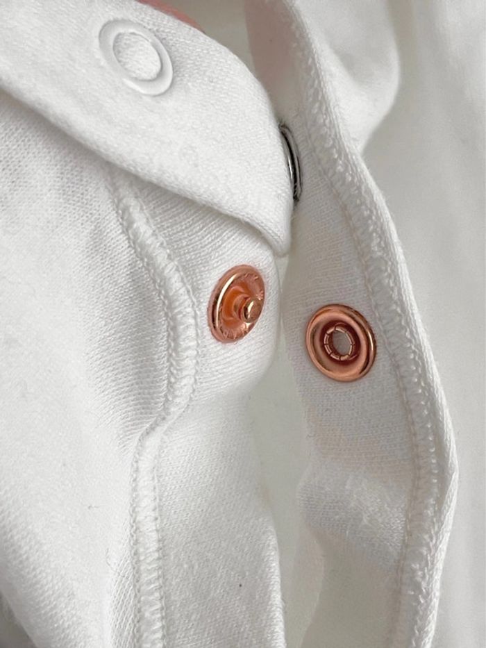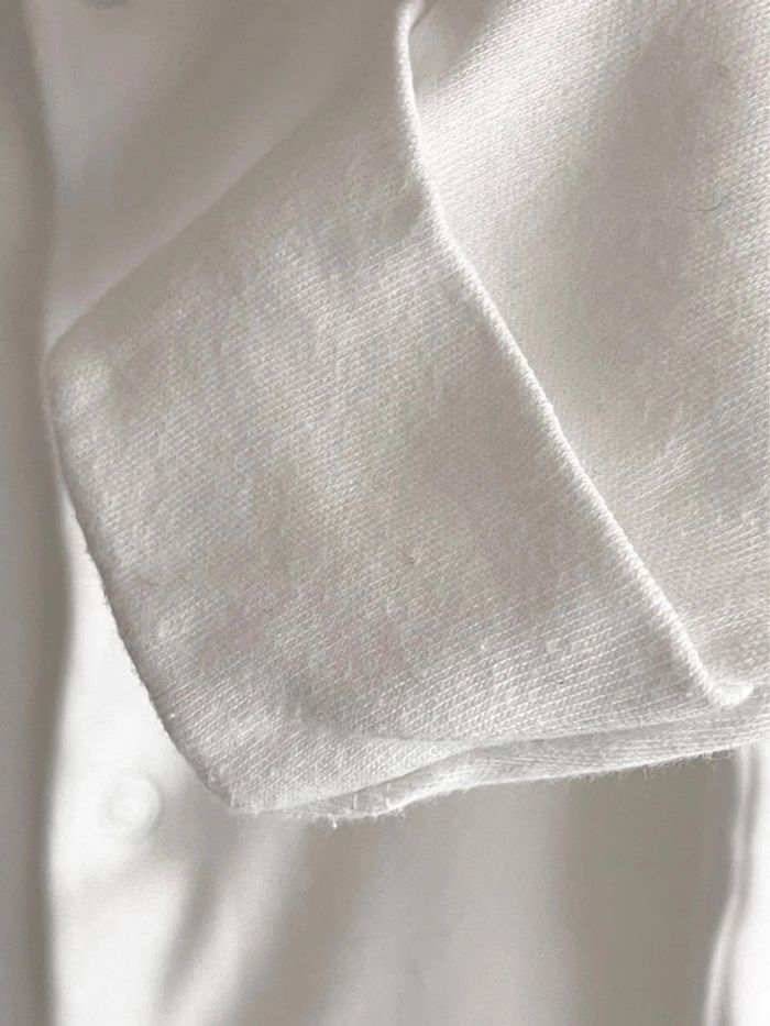 Lot de 2 pyjamas / dors-bien manches longues blancs en 100% coton taille 0-3 mois Marks & Spencer Étiquettes coupées pour ne pas gratter. Manches « refermables » pour éviter que bébé ne se griffe, cf zoom. Déjà portés mais je ne vois aucun défaut spécifique à signaler.. Bien blancs, de fines bouloches peuvent être visible si on les cherche, mais rendent encore très bien, ils sont très durables ! Mixtes, conviendront aussi bien à un petit garçon qu'à une petite fille, vont avec tout Fermés par boutons pression, l'un d'entre eux couleur cuivre facilite le boutonnage (on commence par le fermer, puis on fait les autres de chaque côté)