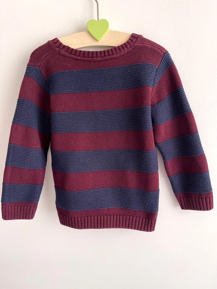 Pull enfant taille 18-24 mois preppy Marks & Spencer à grosses rayures bleu marine et rouge bordeaux - photo numéro 1