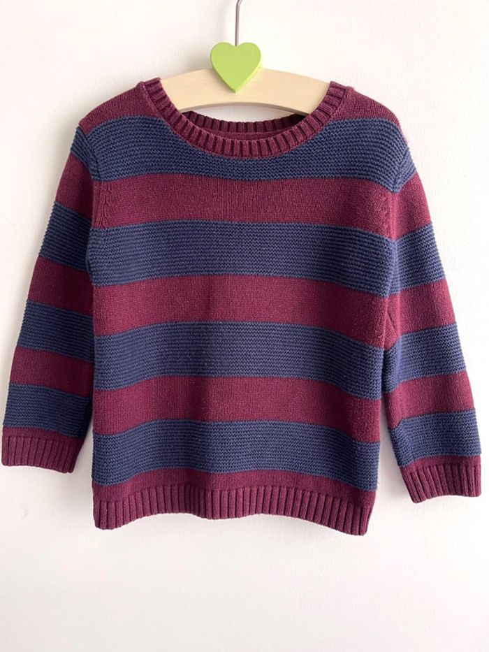 Pull enfant taille 18-24 mois preppy Marks & Spencer à grosses rayures bleu marine et rouge bordeaux