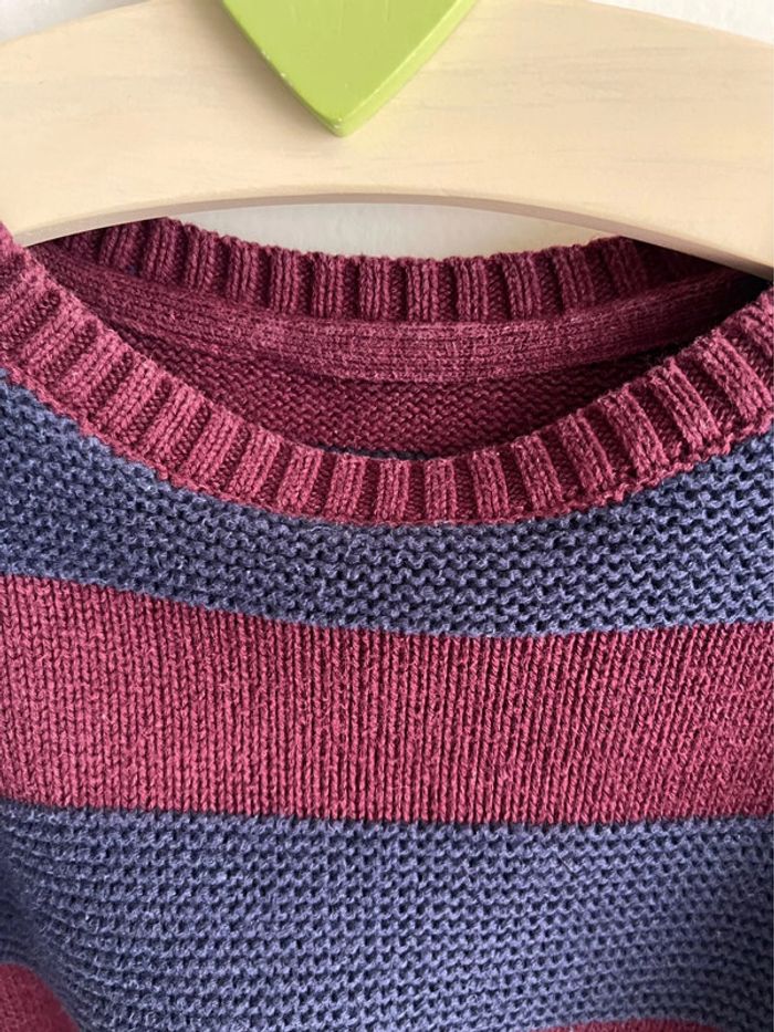 Pull enfant taille 18-24 mois preppy Marks & Spencer à grosses rayures bleu marine et rouge bordeaux - photo numéro 4