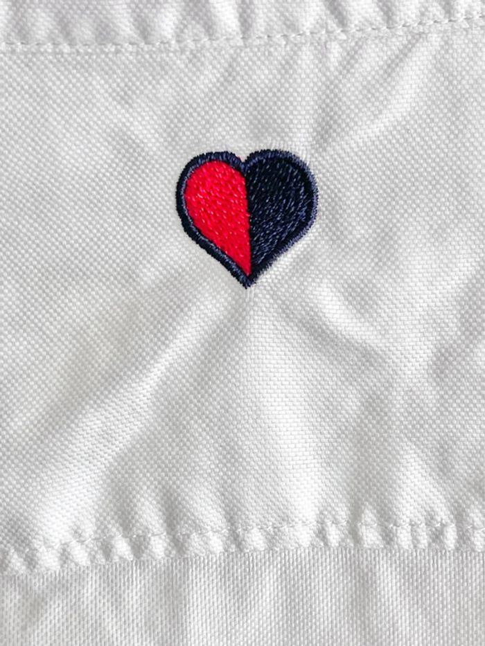 Chemise blanche Tommy Hilfiger en 100% coton Taille 4 US, convient pour un 34 FR Comme neuve, bien blanche, portée une seule fois Logo de la marque brodé sur la poitrine Édition limitée /collector avec liserais roses à l’intérieur au niveau du col et des manches + coeur tommy brodé dans le dos juste en dessous du col. Boutons de rechange cousus à l’intérieur. Dimensions mesurées à plat: Largeur d’aisselle à aisselle: 46cm Longueur manche (mesure prise à partir de la couture de l’aisselle): 49cm Longueur manche (mesure prise à partir de la couture de l’épaule): 62,5cm Largeur taille (au plus étroit): 40cm Longueur totale (mesure prise de dos hors col): 67cm