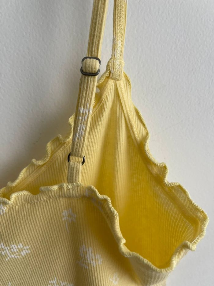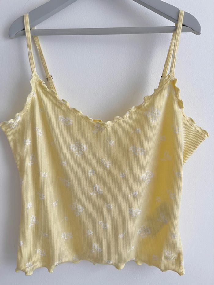 Crop top neuf Hollister jaune fleuri avec de petites fleurs blanches - photo numéro 9
