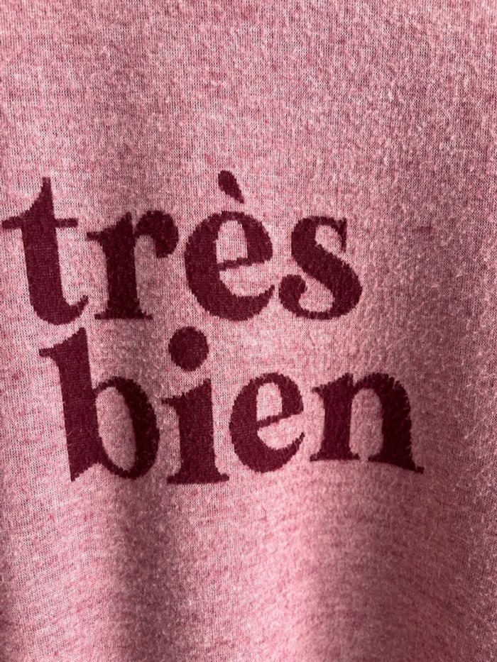 Sweat Marks & Spencer couleur vieux rose chiné avec inscription “très bien” en français