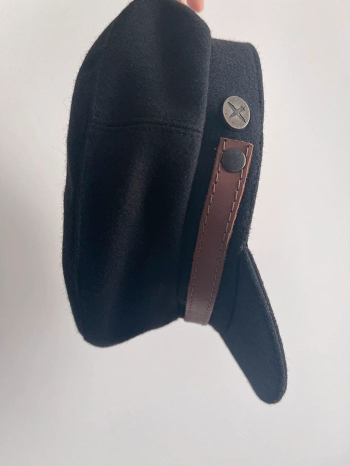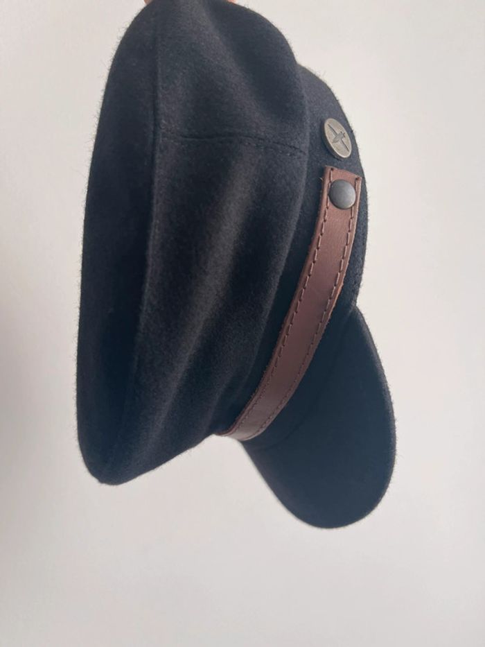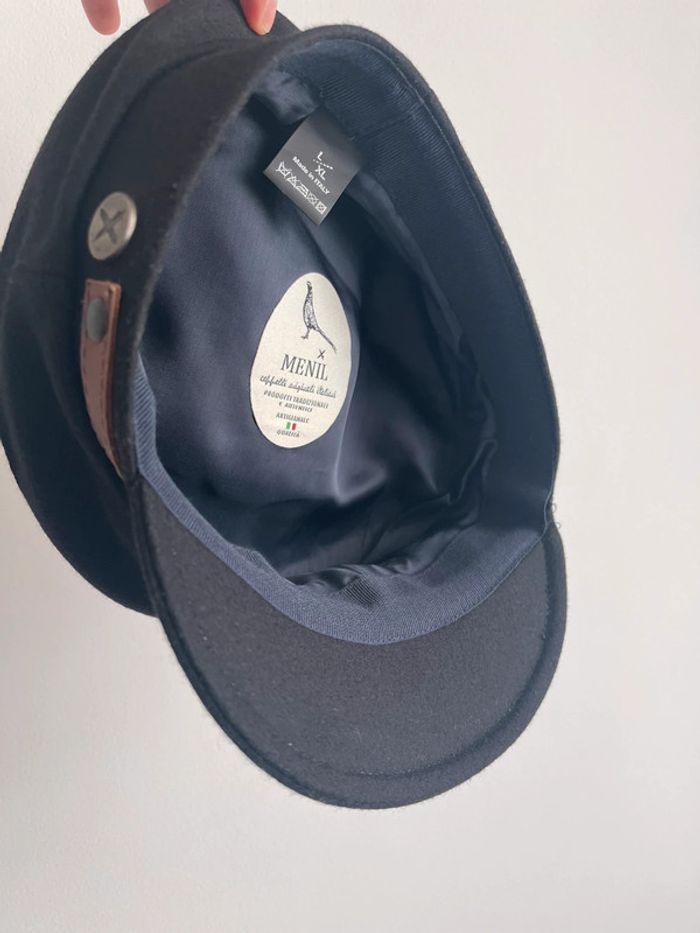 Superbe casquette de marin noire de qualité 75% laine et lanière en cuir made in Italy Neuve sans étiquettes, jamais portée Marque Menil Taille L/XL Je l’ai achetée au rayon homme donc je la range dans la catégorie hommes, mais elle convient tout aussi bien pour une femme, à fortiori si vous avez une grande tête et que toutes les “tailles uniques” du rayon femme sont trop serrées pour vous ! Top qualité ! Maison non fumeur sans animaux ✨