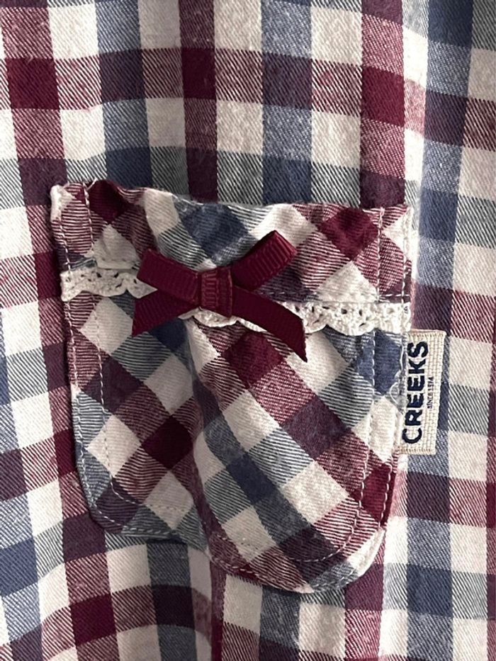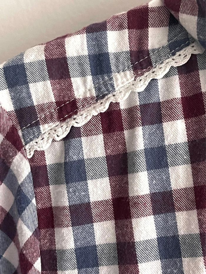 Adorable chemise de nuit ou lounge style cottagecore À carreaux bleus et rouge bordeaux, jolis détails (petit noeud, dentelle, boutons en métal) État neuf portée une seule fois 100% coton Assez courte et ample Taille M 1 petite poche poitrine + 2 poches de chaque côté Longueur dos: 84cm Largeur d’aisselle à aisselle: 54cm Largeur épaule (de couture à couture): 44cm