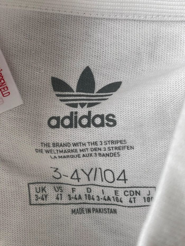 T-shirt blanc adidas originals avec le fameux logo en noir, neuf & étiquetté, taille 3-4 ans - photo numéro 6