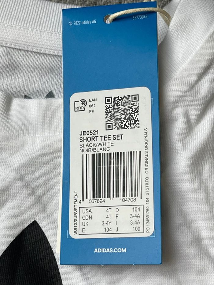 T-shirt blanc adidas originals avec le fameux logo en noir, neuf & étiquetté, taille 3-4 ans 100% coton Mixte, conviendra aussi bien à un petit garçon qu’à une petite fille 👶 Authentique. Envoi rapide 📦