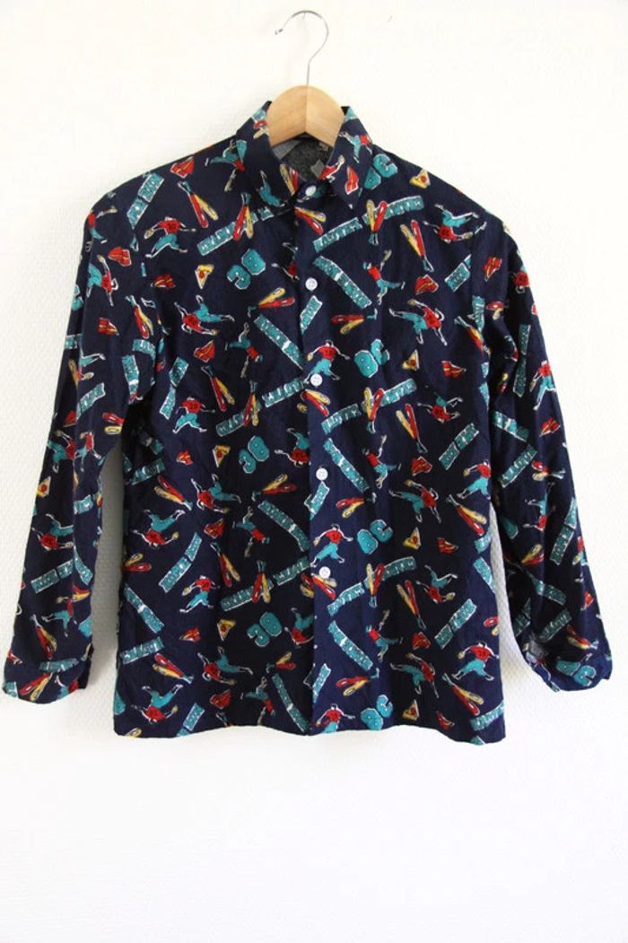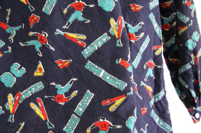 Vintage - Chemise motifs rétro "Baseball" en flanelle de coton, super originale ! - photo numéro 1