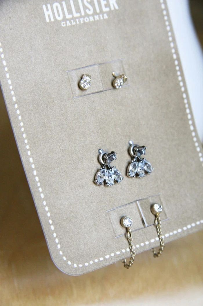 Neuves & étiquetées, boucles d'oreilles Hollister en métal avec petits cristaux. - photo numéro 3