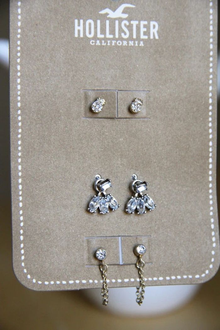 Neuves & étiquetées, boucles d'oreilles Hollister en métal avec petits cristaux. - photo numéro 2