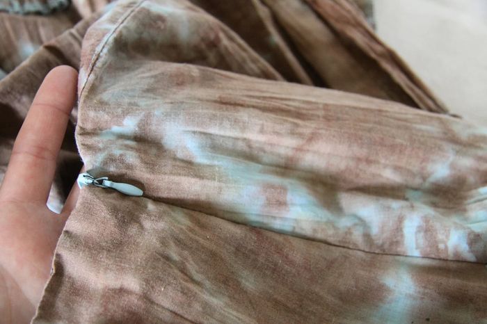 Jupe d’été vintage tie and dye effet marbre turquoise/marron  marque "Ici et Maintenant" - photo numéro 4