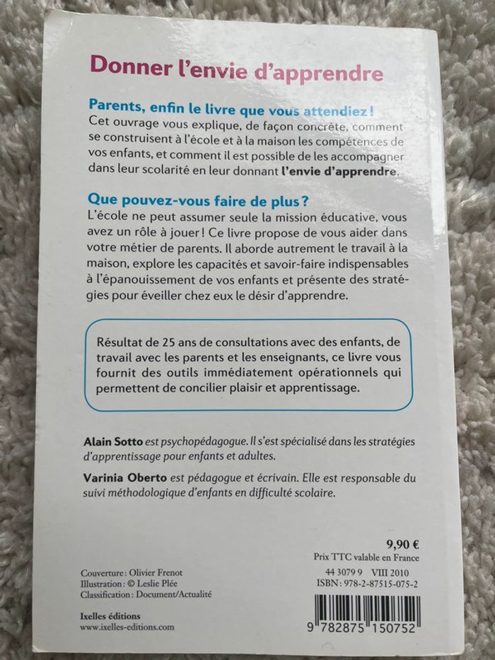 Livre “Donner l’envie d’apprendre” Alain Sotto / Varinia Oberto Bon état, quelques petits signes d’usage à l’extérieur visibles en photo. Jusque -20% sur cet article dans le cadre d’un lot 📦