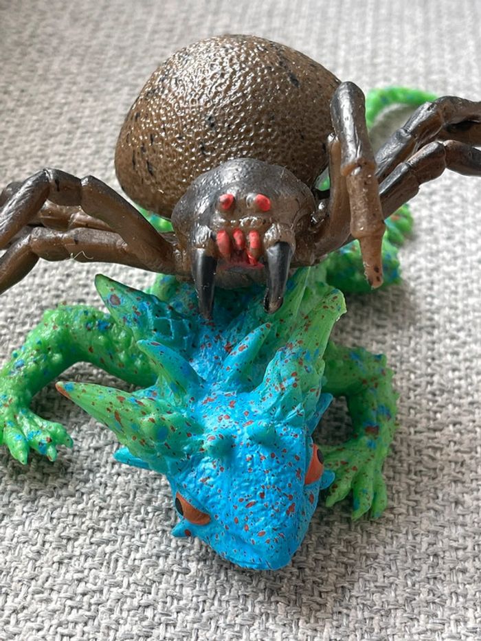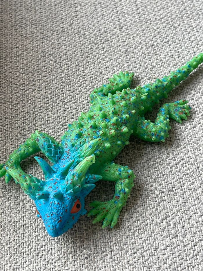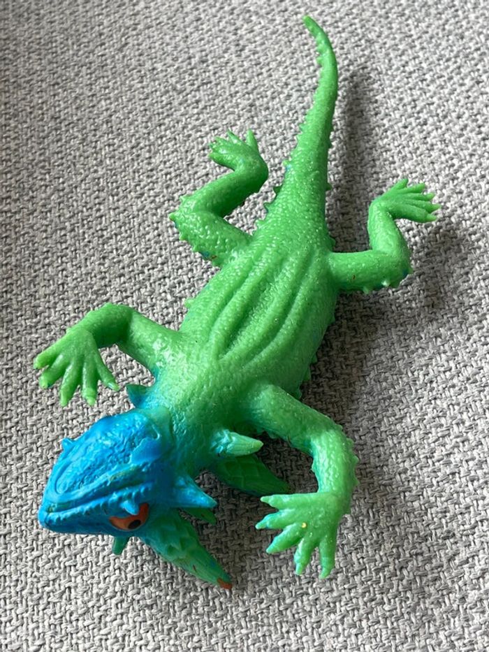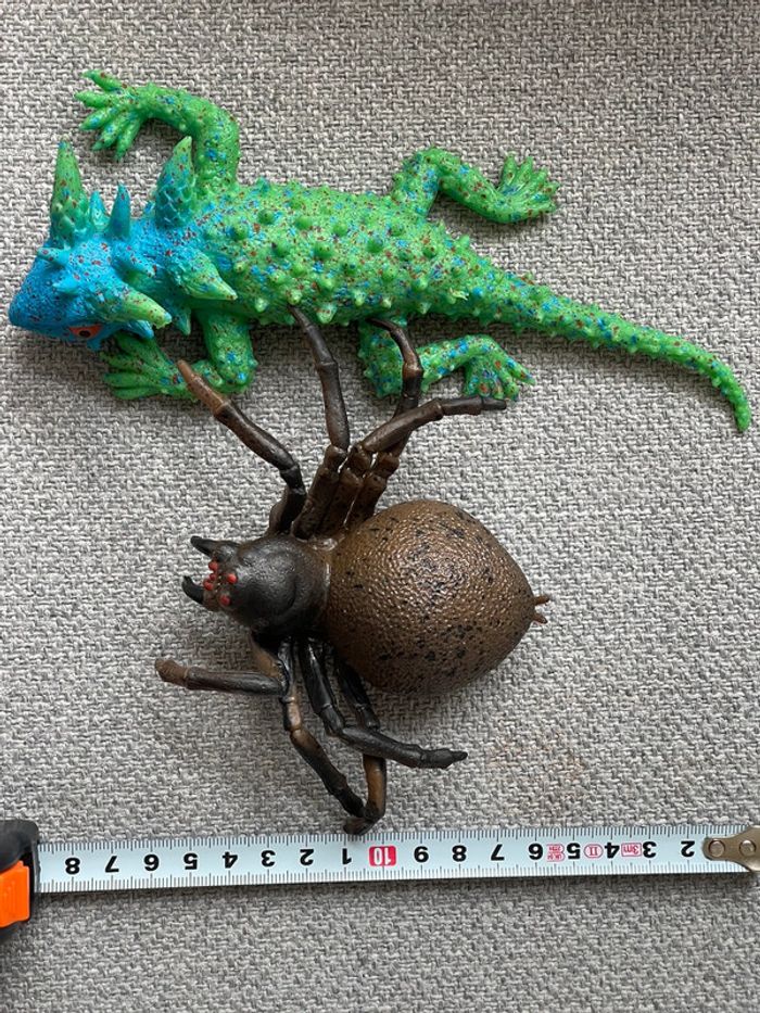 Lot de 2 jouets squishy 1 lézard vert/bleu + 1 arraignée marron N’ont jamais servi. L’araignée (mygale ?) est plutôt réaliste. Le lézard un peu moins parce que quand même assez flashy.