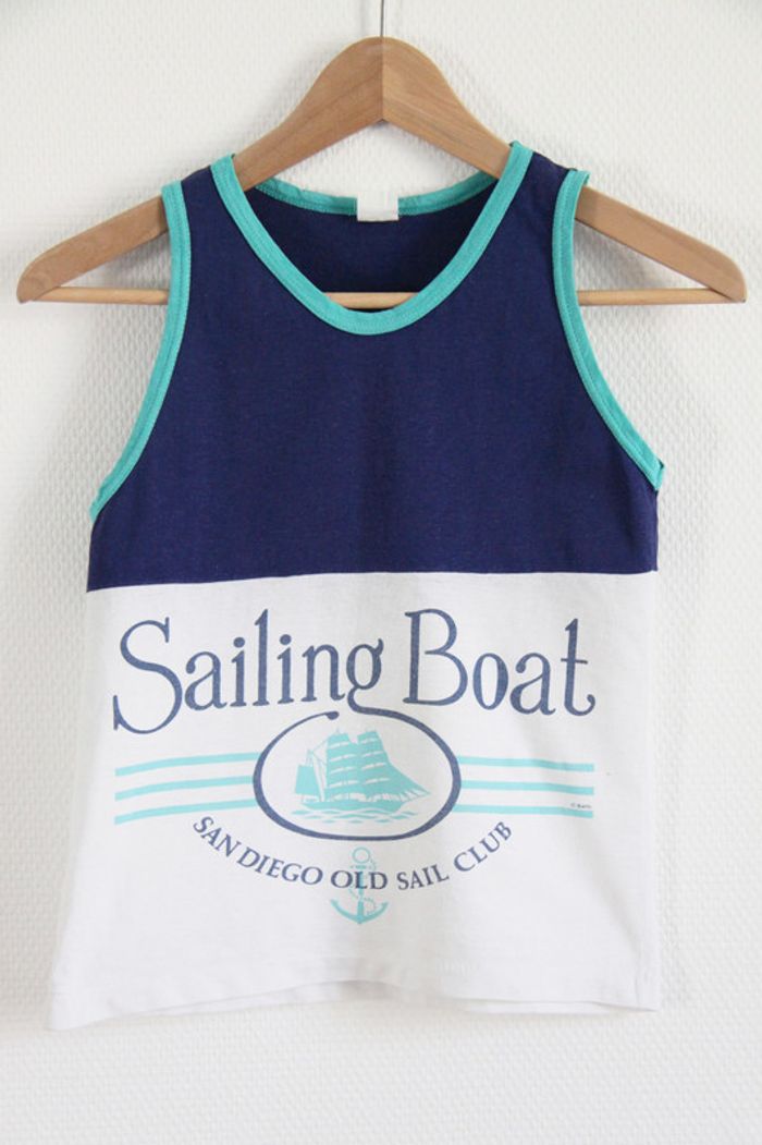 Vintage petit débardeur cropped tons bleus motif nautique "Sailing Boat - San Diego Old Sail Club" - photo numéro 1