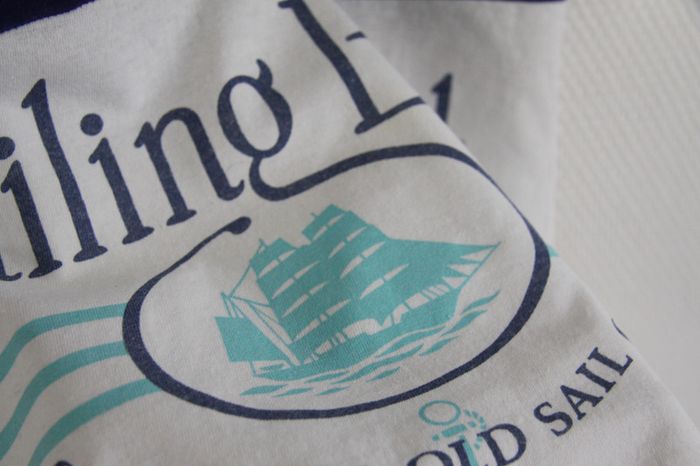 Vintage petit débardeur cropped tons bleus motif nautique "Sailing Boat - San Diego Old Sail Club" - photo numéro 5