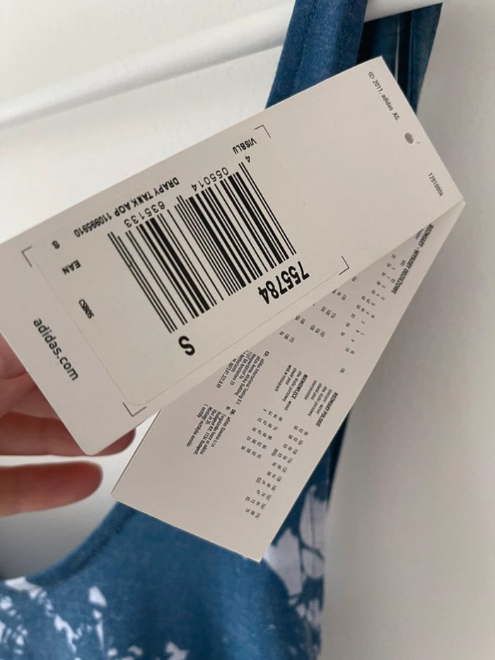 Débardeur neuf et étiquetté Adidas performance taille S - motif paysage, bretelles croisées dans le dos Doux et léger, jamais porté Je ne sais plus le prix d’achat exact, mais d’après internet il était à 49 euros (je l’ai retrouvé en ligne donc je peux vous envoyer les photos portées qui y sont présentées également) A2
