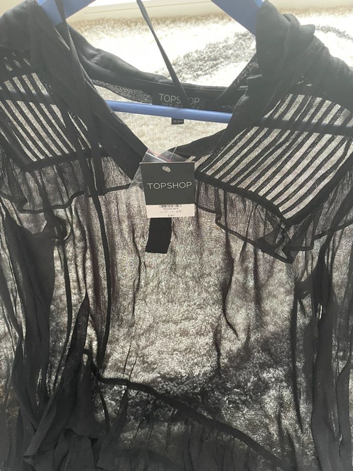 Magnifique blouse noire neuve étiquettée Topshop toute en transparence avec petit noeud à nouer - photo numéro 1