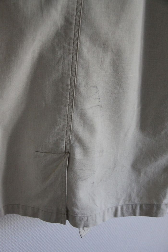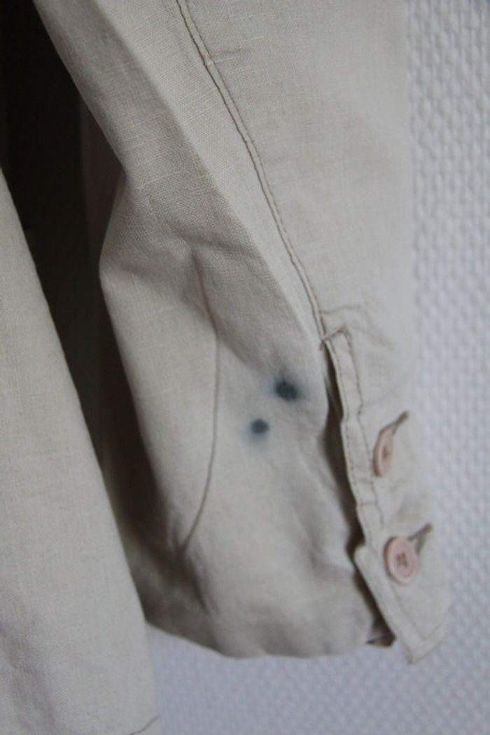 Vintage C&A Veste #homme ou #boyfriend avec épaulettes, en 55% lin 45% coton Taille indiquée : L - 52 / 54, mais taille plutôt comme un XL (n'hésitez pas à demander les dimensions exactes en cm si besoin) Couleur beige clair, tirant légèrement vers le vert, couleur "lin" en fait Belle matière, et très belle qualité de base, mais tout petit prix car 2 défauts à signaler : à l'arrière trace noire (fortement atténuée après lavage, je pense qu'il doit être "possible" de la faire partir) + trace d'encre sur une des manches, je ne pense pas que celle-ci partira :( (cf zooms) (peu visibles une fois la veste portée, et les manches peuvent être retroussées) c_b2
