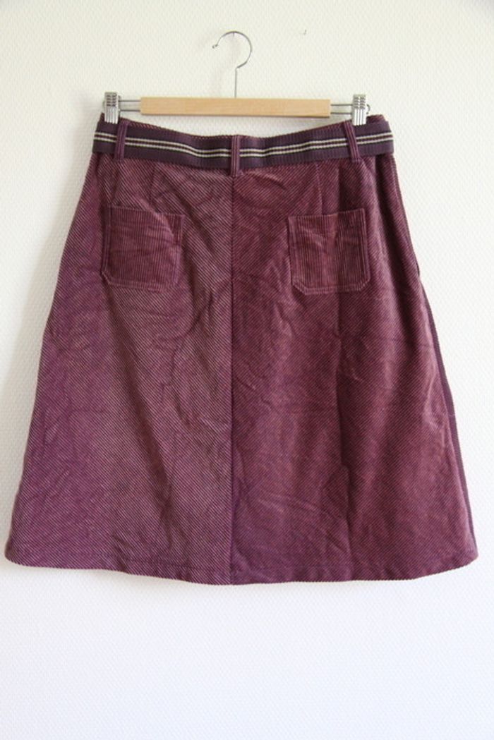 Jupe trapèze en velours côtelé couleur prune avec ceinture incluse - photo numéro 5