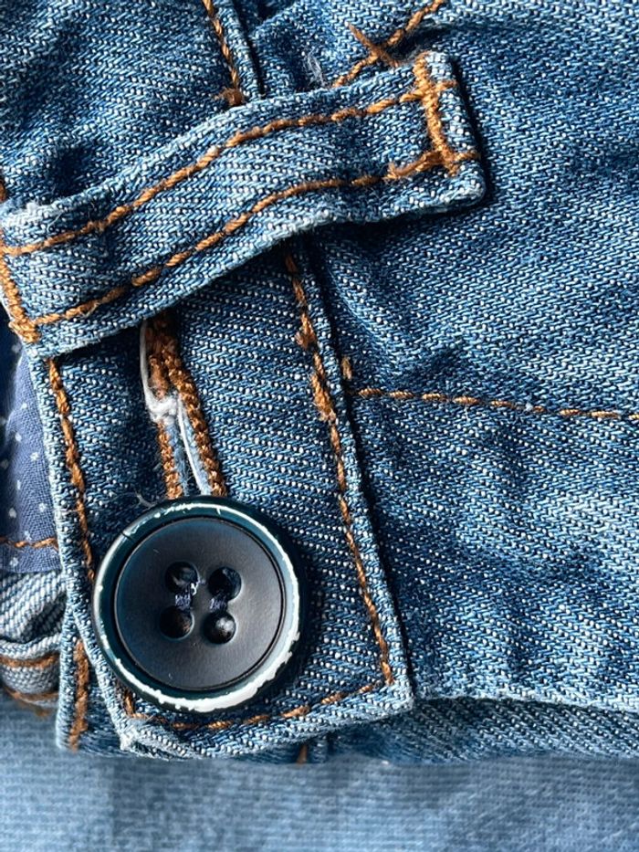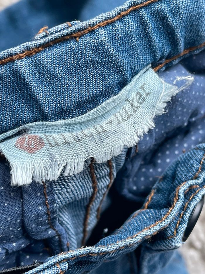 Jean plutôt fin Hitch Hiker, idéal pour la mi-saison/l’été, top qualité, taille 2-3 ans Acheté chez Yoox, made in Italy il me semble Seul petit défaut visible : bords du bouton un peu écaillés. Mais ça ne choque pas, reste dans l’esprit vintage du pantalon (et vous pouvez le changer facilement si vous le souhaitez)