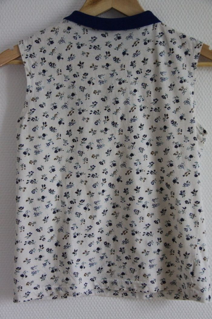 Vintage made in France - top sans manches avec petites fleurs et col polo contrastant bleu roi - photo numéro 4
