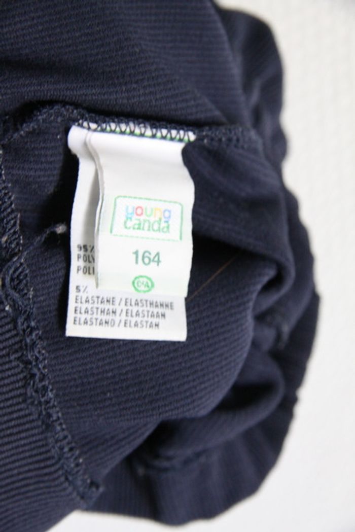 Taille indiquée : 164 Composition : 95% polyester, 5% élasthanne "faux" boutons sur le devant Largeur de la taille à plat : 27,5cm (étirable jusque 43cm maxi-maxi !) Entrejambe 74cm, bas évasé. Pas neuf mais de bonne qualité. c_a3
