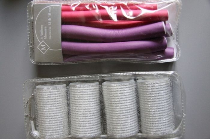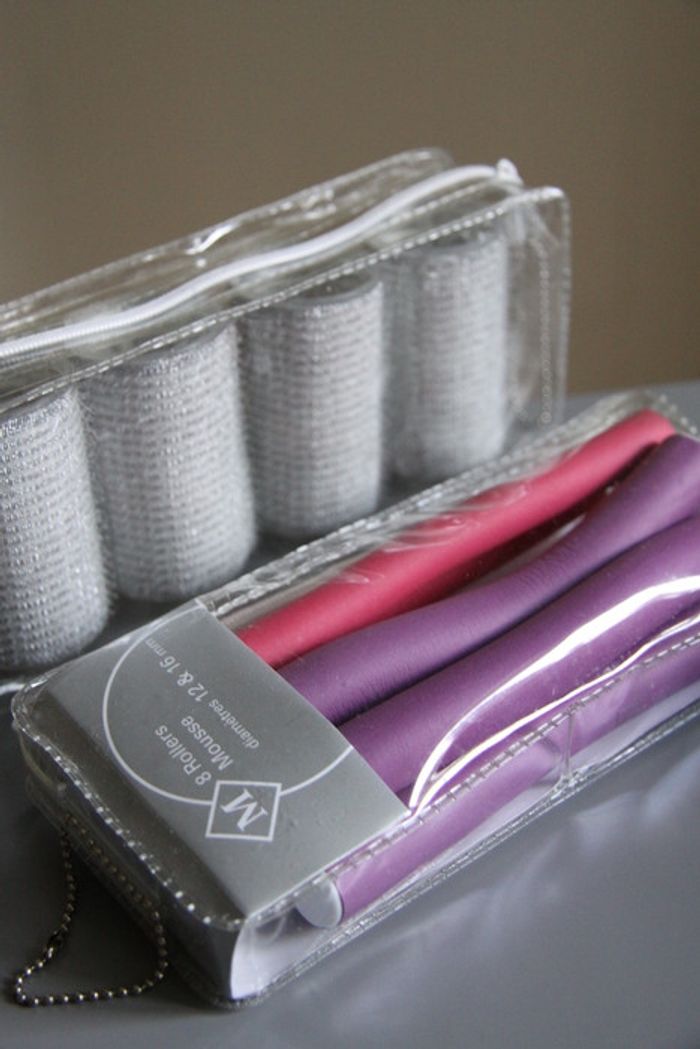 J'ai dû tester quelques rouleaux peut-être durant une phase d'expérimentation capillaire, mais les résultats n'étant pas concluants, je ne les ai jamais utilisés. Lot de 4 rouleaux velcro + 8 rollers mousse (4 de diamètre 12mm et 4 de diamètre 16mm) Je ne sais plus combien je les avais payés, mais Monoprix fait des choses de bonne qualité. c_a2