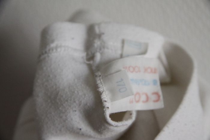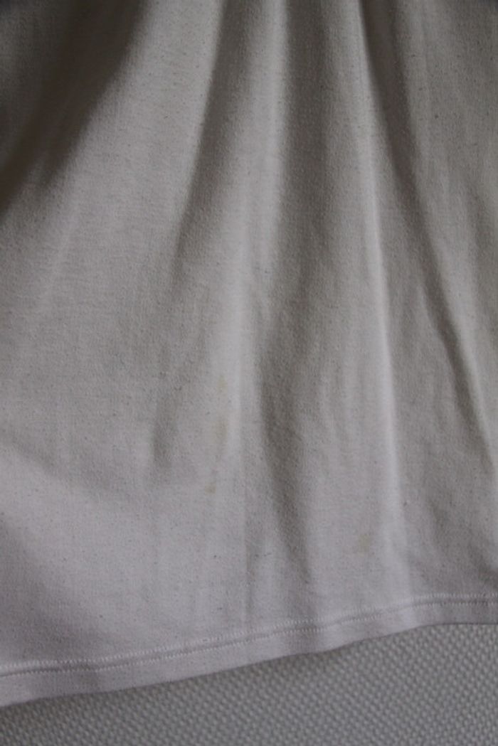 Pièce exceptionnelle de par sa coupe, son âge et son origine ! Top vraiment super joli et original, mais attention il a du vécu, ce n'est pas du neuf ! Ses défauts : fines bouloches sur l'ensemble du tissus (jersey de coton) + quelques légères petites tâches (déjà fortement atténuées suite au lavage avec détachant) Taille indiquée : 170 Largeur à plat d'aisselle à aisselle : 42cm Je recommande pour un 34, ou 36 maxi c_b1