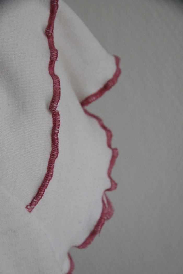 Vintage 70's polonais top blanc / écru manches courtes avec petits mancherons rebrodés de rose - photo numéro 4