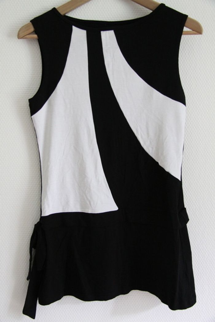 Made in France robe rétro sixties neuve jamais portée Neuve jamais portée, juste une petite trace de fond de teint côté interne, sera lavée avant envoi. Ruban noué sur le côté. Attention très courte ! Convient plutôt pour un 36. c_b1