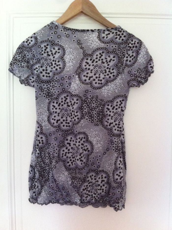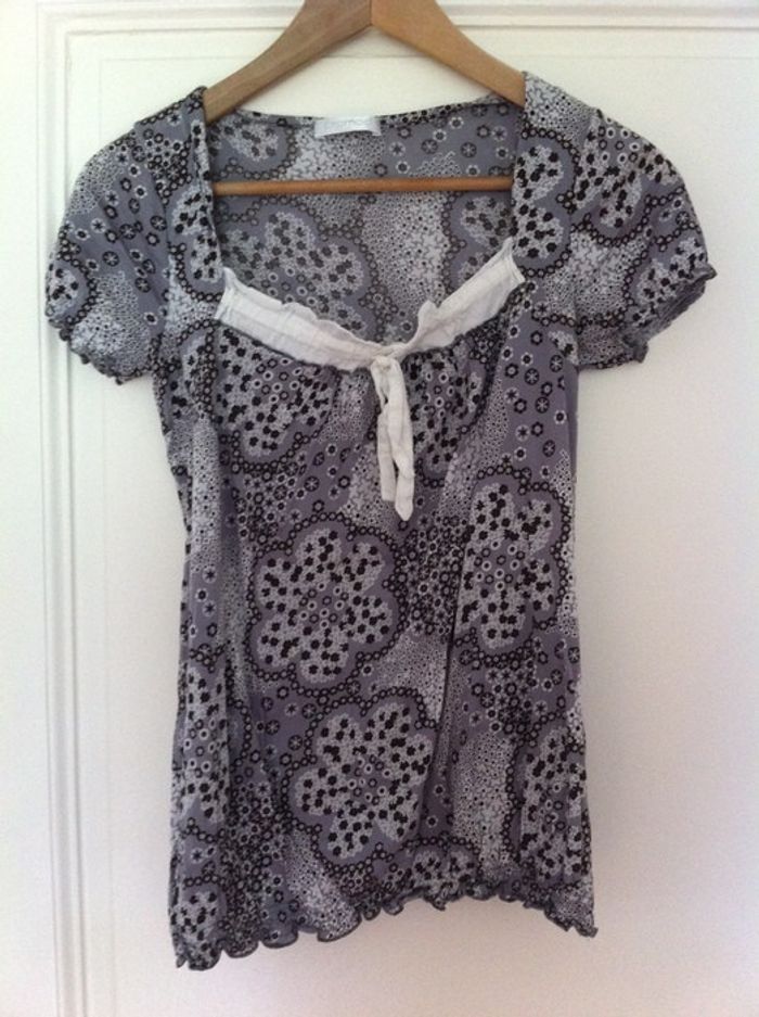Haut manches ballons, resserré à la base également. Décolleté "carré". Taille 2 = M = 38 Comme neuf, porté/lavé 1 fois 100% coton c_a6