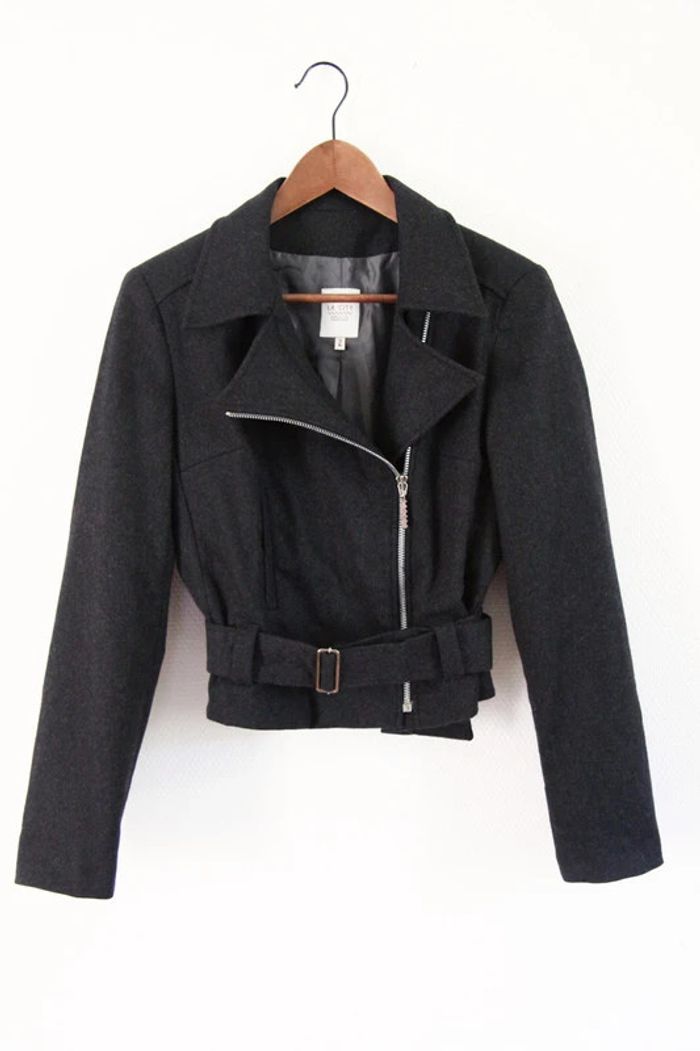 Perfecto style motard en laine majoritaire gris anthracite - La City vintage - photo numéro 1