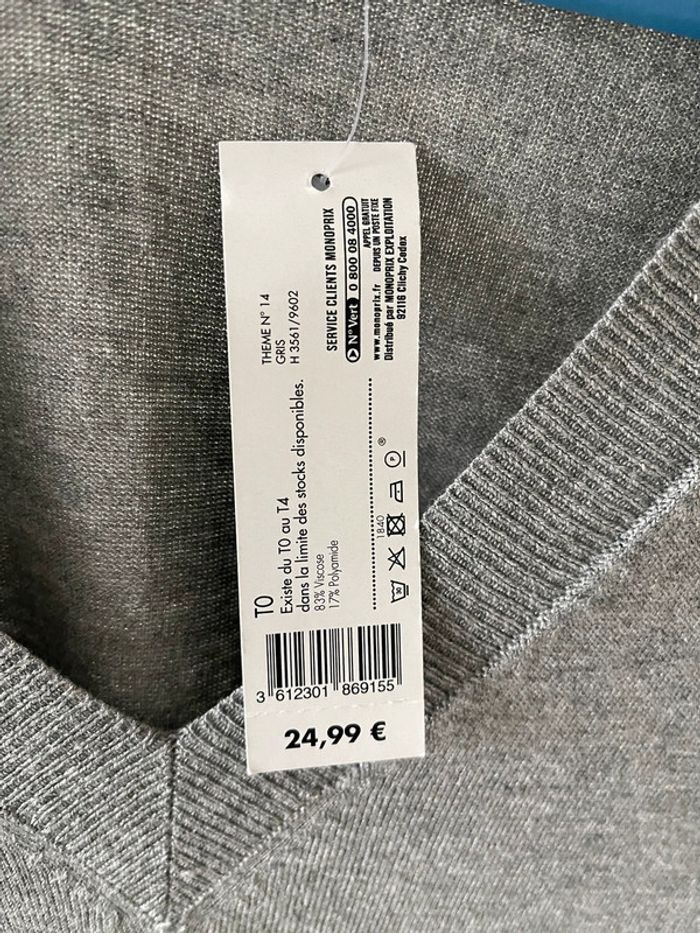 Robe pull grise Monoprix en maille fine taille 34/36, manches 3/4 - photo numéro 4