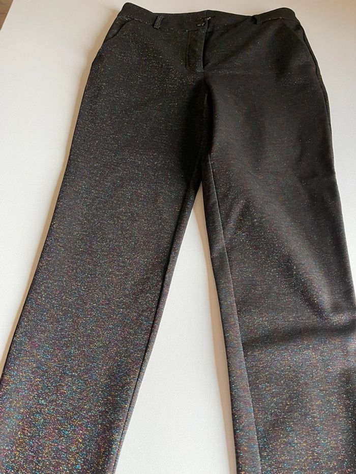 Pantalon à paillettes multicolores collab créateur José Levy - Monoprix Taille 38, avec du stretch dedans, Original et classe pour les fêtes ! Porté une fois, parfait état. Vérifiez les dimensions visibles en photo pour être sûres qu’il soit à votre taille ;) c_db