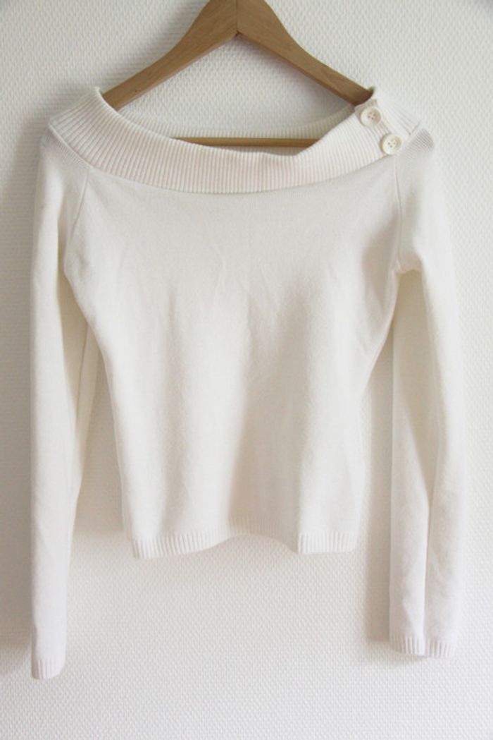 Pull vintage collector neuf collection ALIAS (la série) par Pimkie Taille indiquée : 3 (L) Mais convient plutôt pour un 36/38 sinon risquerait d'être trop moulant ! Un peu transparent (comme la plupart des vêtements blancs !) Jamais porté. c_b3
