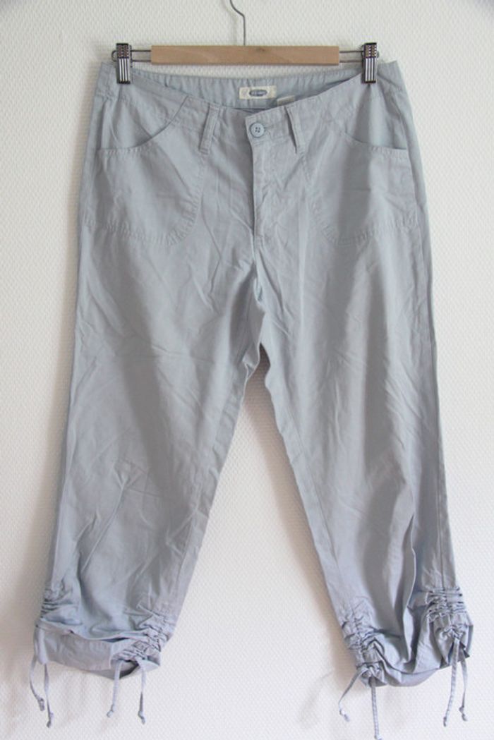 Chino vintage y2k Old Navy taille 6US Couleur entre le bleu et le gris. Plutôt bleu (clair) Peut être désserré / resserré en bas. Arrive de sous le genou ou à mi-mollets, en fonction de votre taille. Taille 6US = grand S, convient pour un petit M également. c_a7