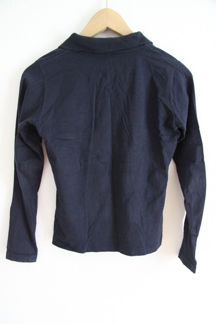 Vintage polo manches longues bleu marine avec bande horizontale blanche et liserai jaune Très bon état. Taille indiquée : 164, convient pour un 36 ou 34. c_b1