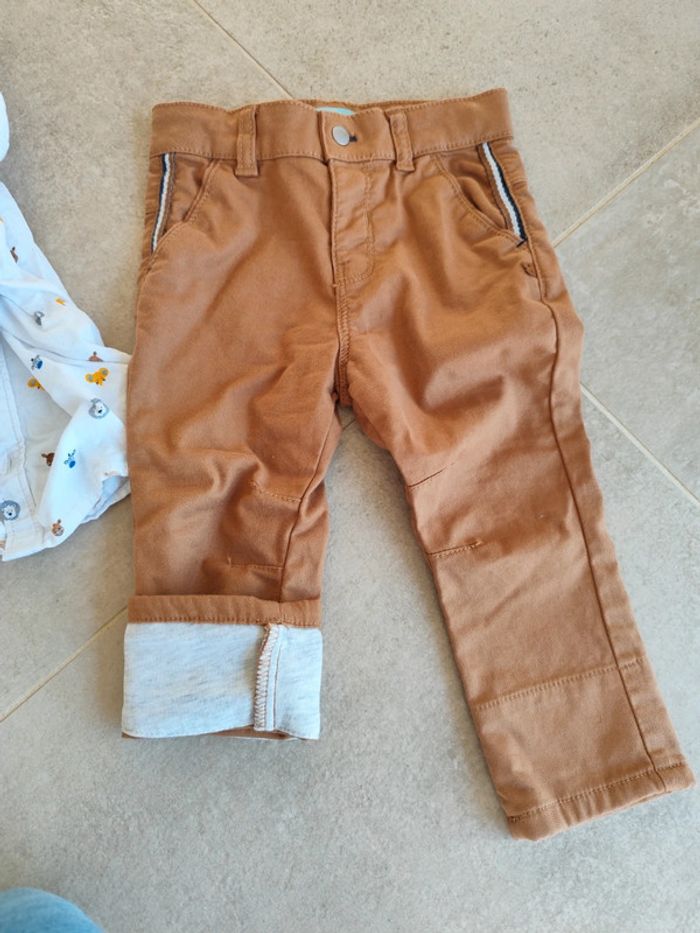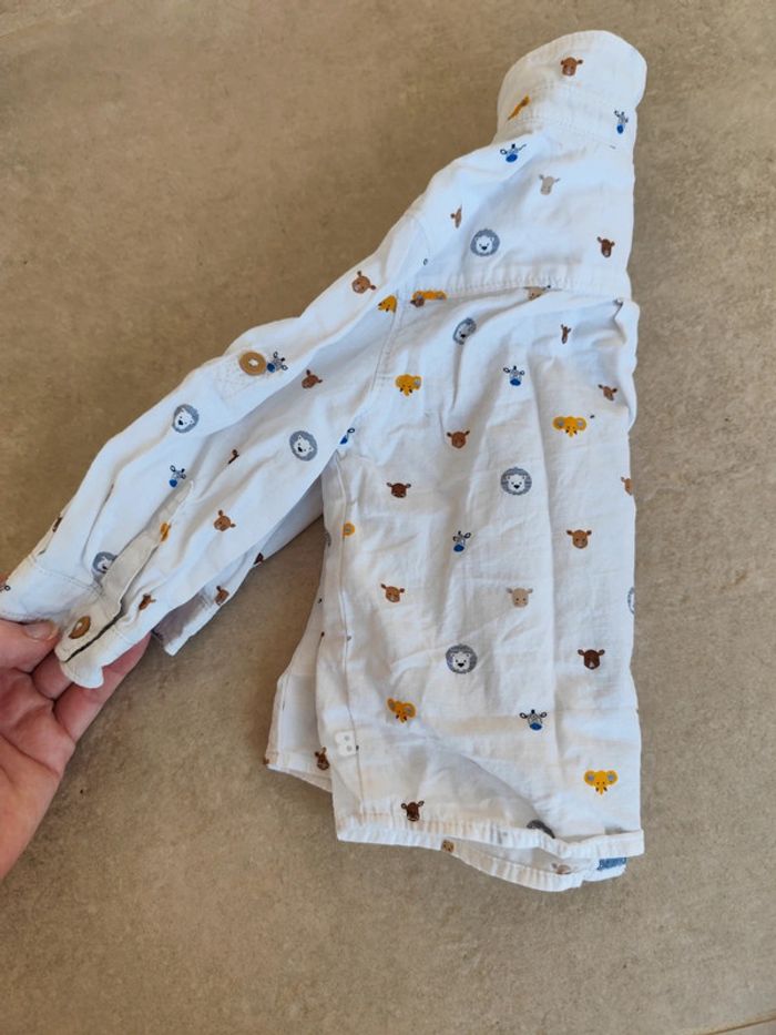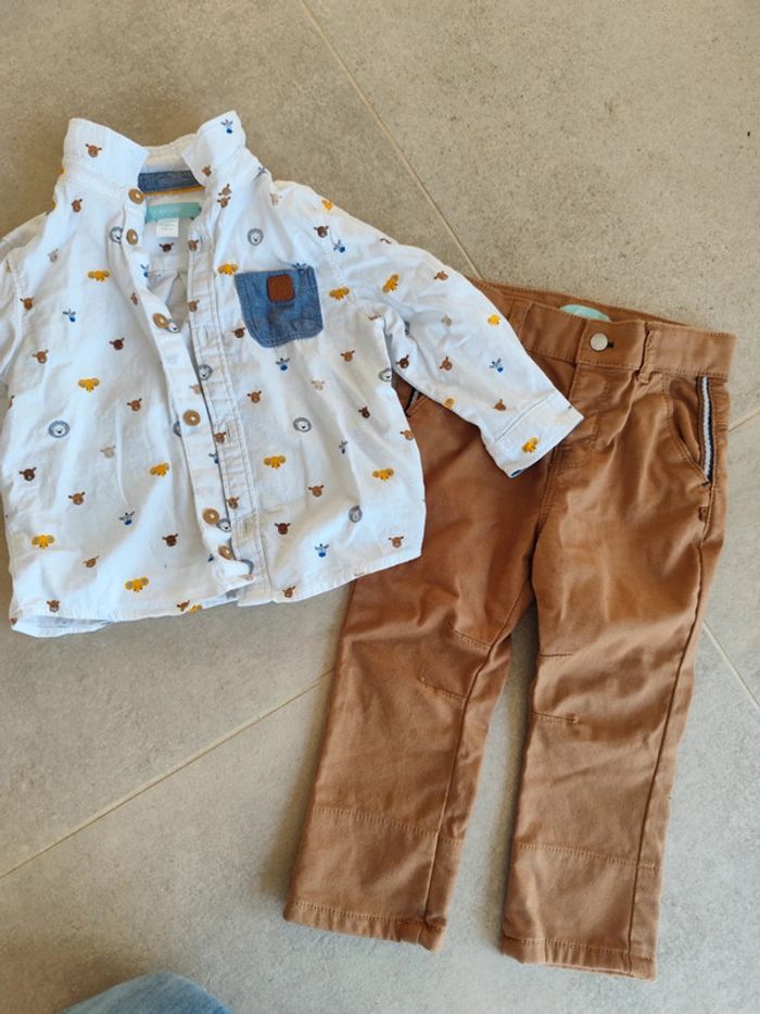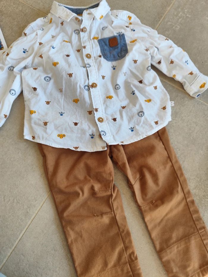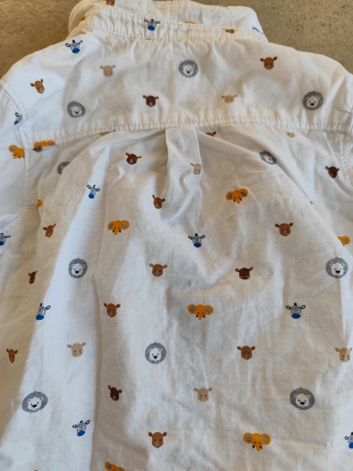 Ensemble chemise manches longues et pantalon Obaibi 12 mois Thème safari, animaux de la savane Le pantalon peut se relever en bas, voir photo. Il se resserre à la taille Je vends d'autres ensembles, n'hésitez pas à regarder mes autres annonces.