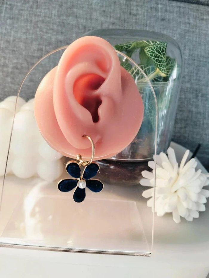 Créoles dorées avec pendentif fleur bleue marine et perle blanche Mes bijoux : #neidj2001bijoux Mes accessoires : #neidj2001accessoires