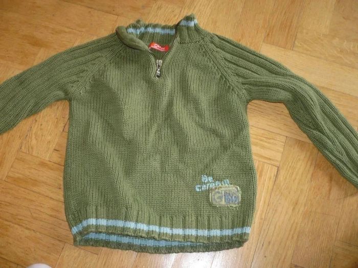 Pull vert kaki avec une rayure bleue Okaou 4 ans - photo numéro 1