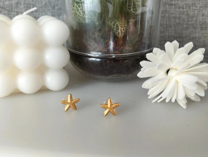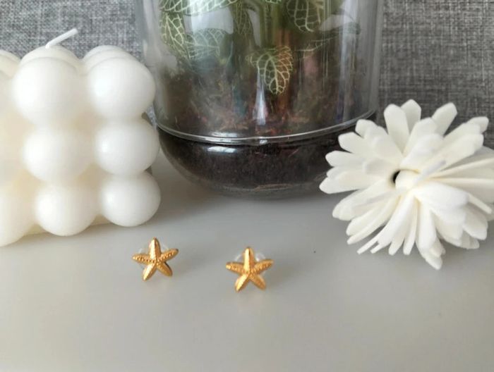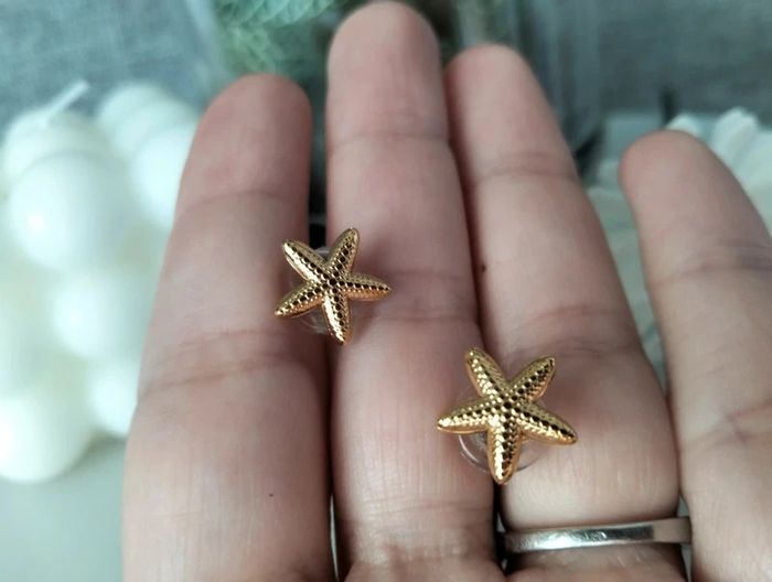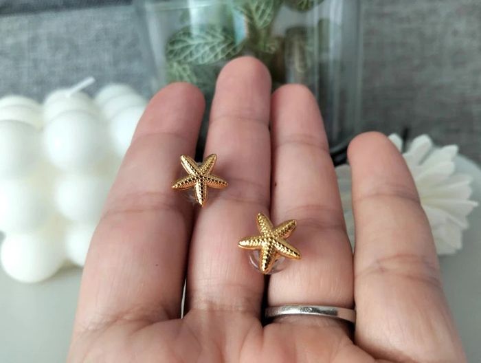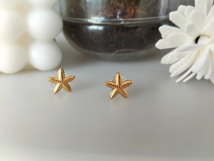Clous dorés étoile de mer en acier inoxydable. 1 cm. Mes bijoux : #neidj2001bijoux Mes accessoires : #neidj2001accessoires