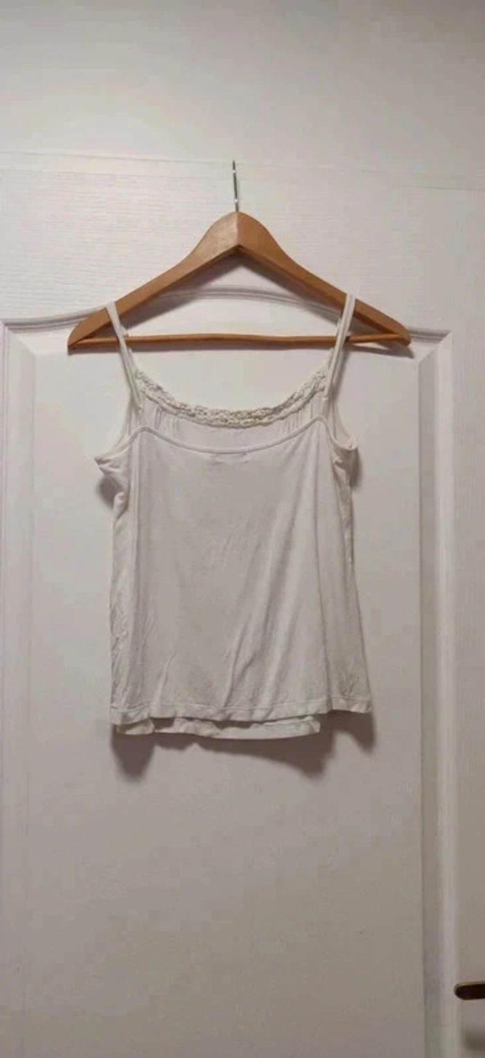 Top bretelles caraco blanc Monoprix 38 Effet dentelle sur le décolleté - Quelques bouloches Mes hauts en 38 : #neidj2001top38