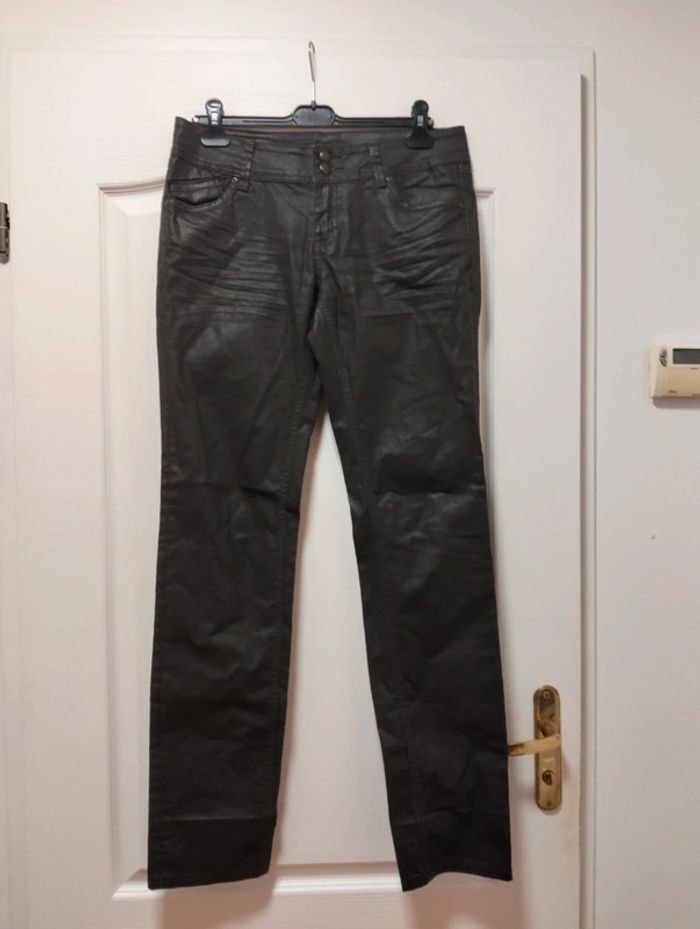Pantalon enduit marron Promod 40 Longueur environ 108 cm Mes pantalons en 40 : #neidj2001pantalon40