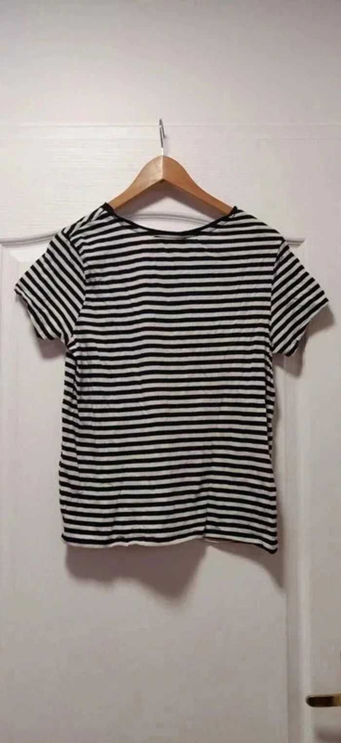 T-shirt mc rayé noir et blanc Mango 40 - photo numéro 2