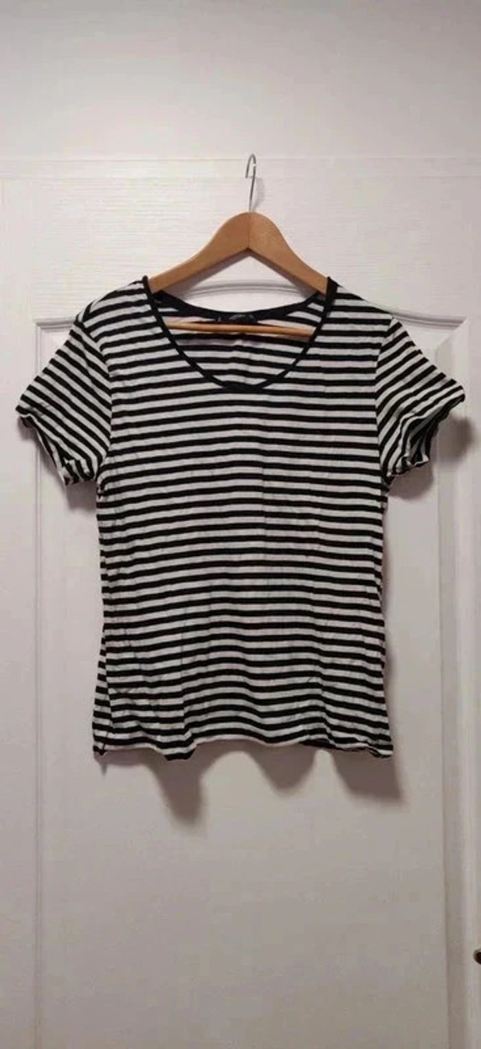T-shirt mc rayé noir et blanc Mango 40 - photo numéro 1