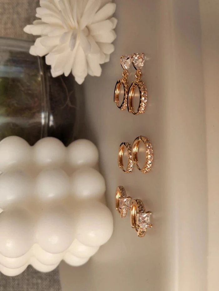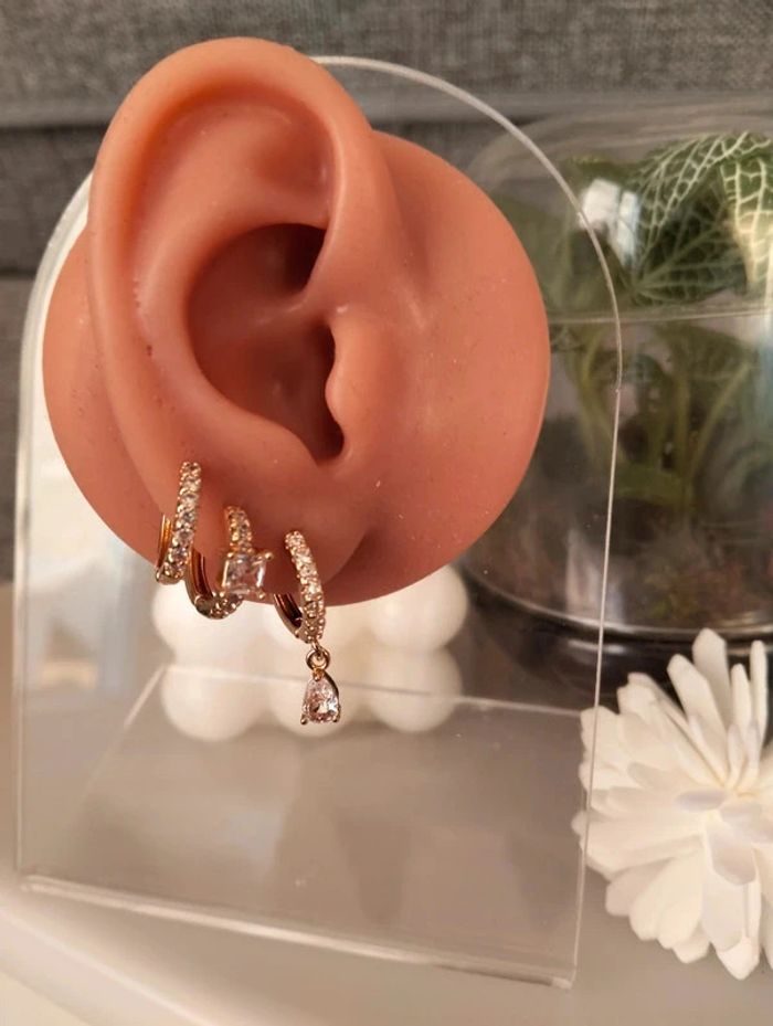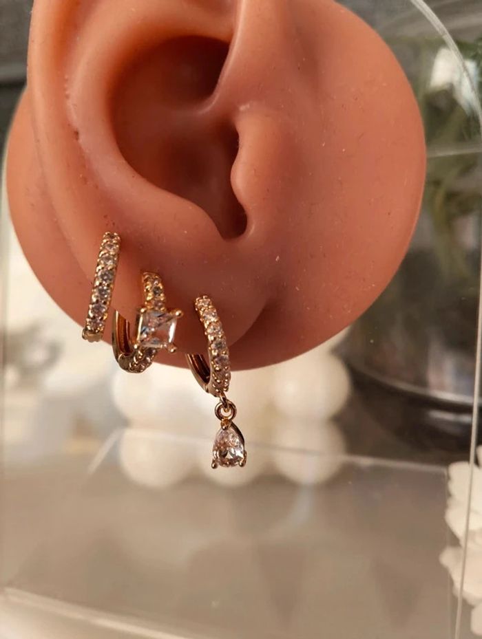 Composition MNpMNcMNs (6 unités) en acier inoxydable blanc et doré. Mini créole pampille + carré + strass Mes bijoux : #neidj2001bijoux Mes accessoires : #neidj2001accessoires