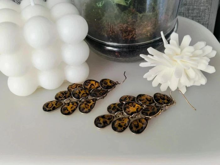 Boucles d'oreilles pendantes motif léopard - photo numéro 1
