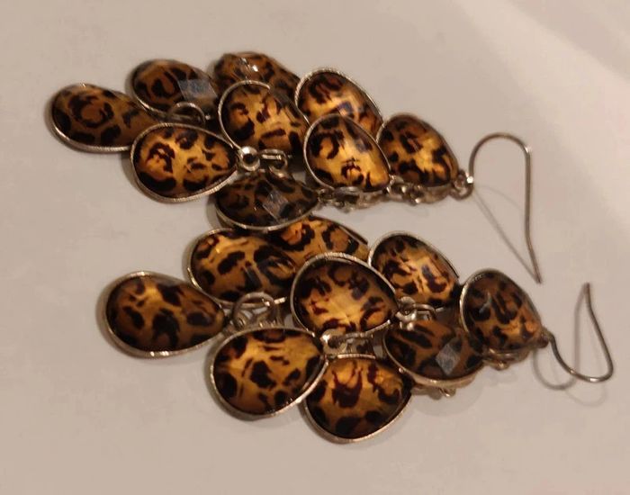 Boucles d'oreilles pendantes motif léopard - env 7 cm Mes bijoux : #neidj2001bijoux Mes accessoires : #neidj2001accessoires