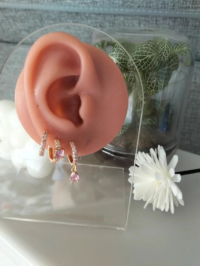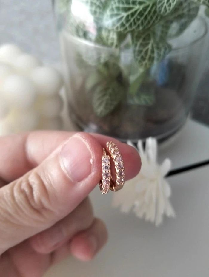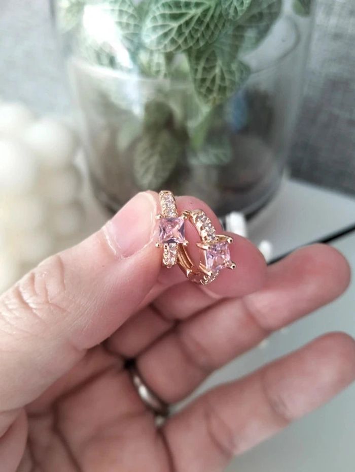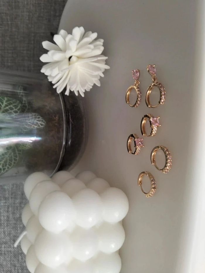 Composition MNpMNcMNs (6 unités) en acier inoxydable rose et doré. Mini créole pampille + carré + strass Mes bijoux : #neidj2001bijoux Mes accessoires : #neidj2001accessoires